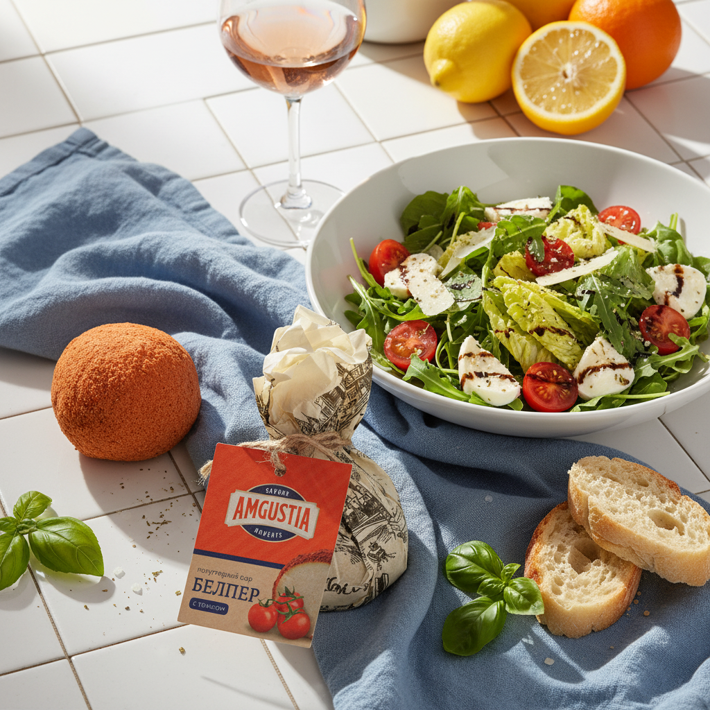 Вариант с базиликом — это свежий травяной аромат и яркая вкусовая нота, которая подчёркивает насыщенность сыра. Такой белпер отлично подойдёт к пасте и пицце, летним салатам, брускеттам и лёгким белым винам.