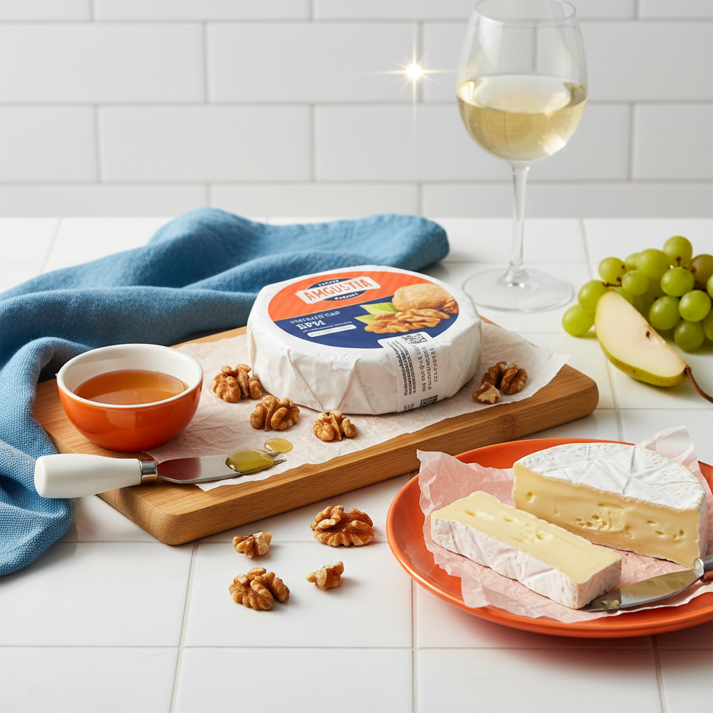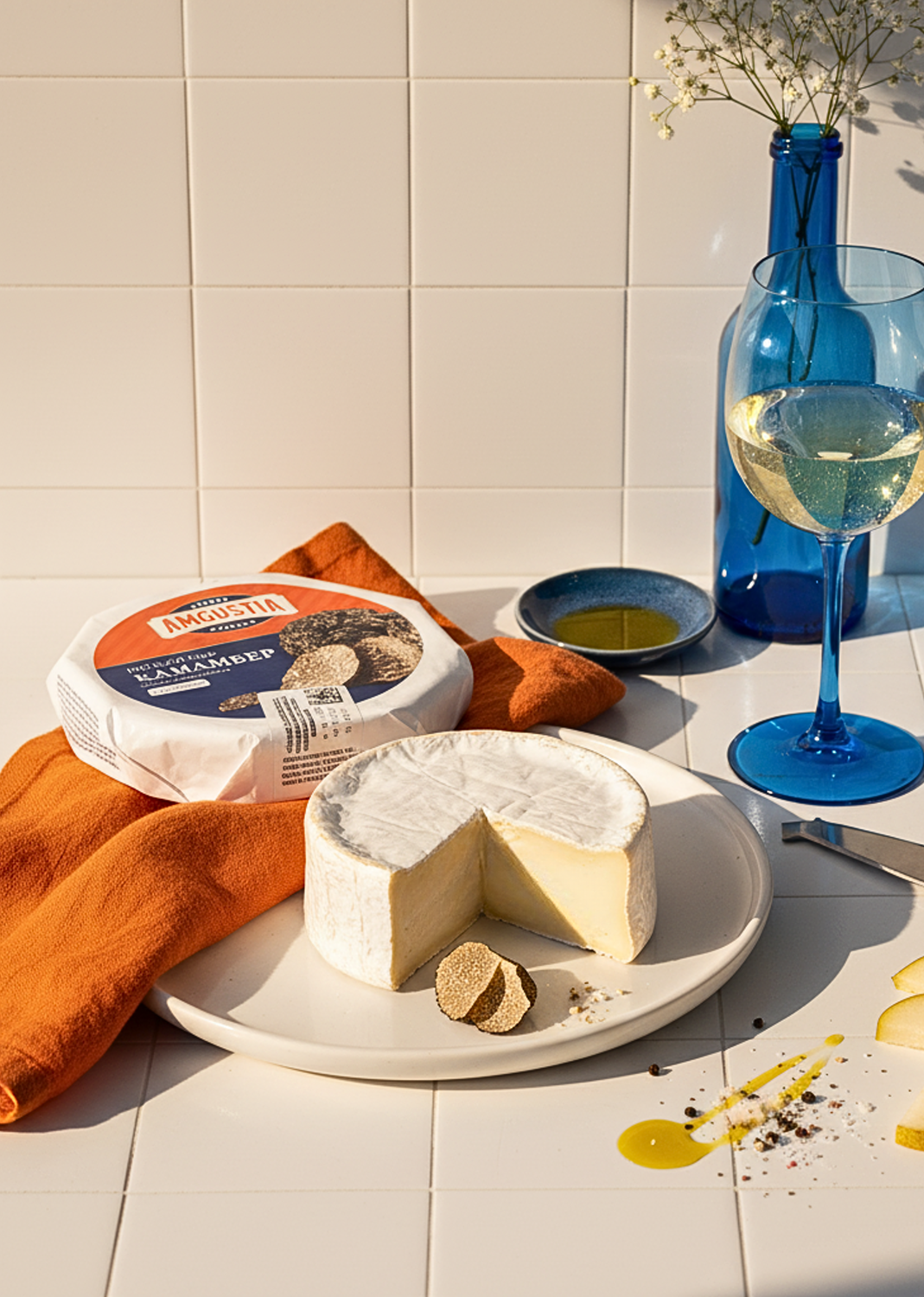 Камамбер с трюфелем — утончённая вариация классического французского сыра. Под тонкой белой коркой — нежная, сливочная текстура с деликатным вкраплениями трюфеля. Такие сыры начали набирать популярность в XX веке, когда гастрономия вступила в эпоху гурмэ-продуктов, а трюфель стал символом изысканности. Сегодня этот сыр — идеальный выбор для подачи в тёплом виде, с пастой или как акцент на сырной тарелке. Фермерское исполнение придаёт ему живой вкус и особый шарм.